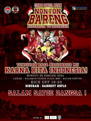 Rani juga mengajak seluruh masyarakat Batam untuk meramaikan acara nonton bareng (Nobar) Timnas Indonesia vs Australia di MB 2 pada Minggu (28/1/2024).